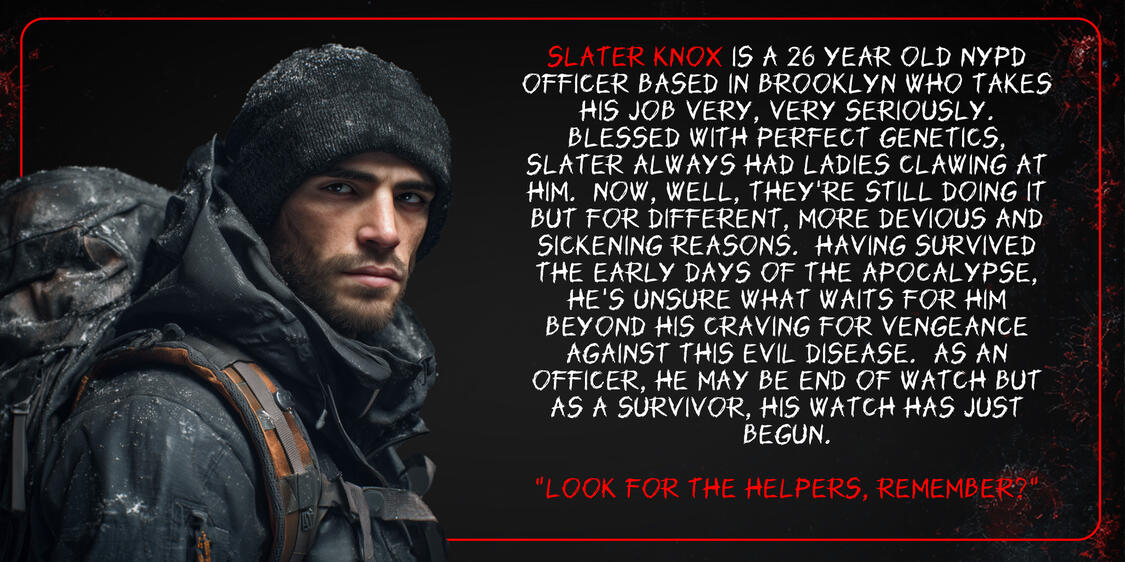 In 2028, The Necrotic Viral Infectious Disease dubbed NECROVID proved to be an evil and painful affliction that caused necrosis of the flesh, organs and sometimes even bones. It was treatable at first with amputation or radiation but it mutated to work quicker and spread easier and hospitals could not keep up. Old failsafes and restrictions became daily, uncomfortable protocols for months as governments around the globe panicked to maintain a functioning society. It spread to every country. With no cure, vaccine or working treatments, it didn’t take long until the global death toll cascaded out of control.